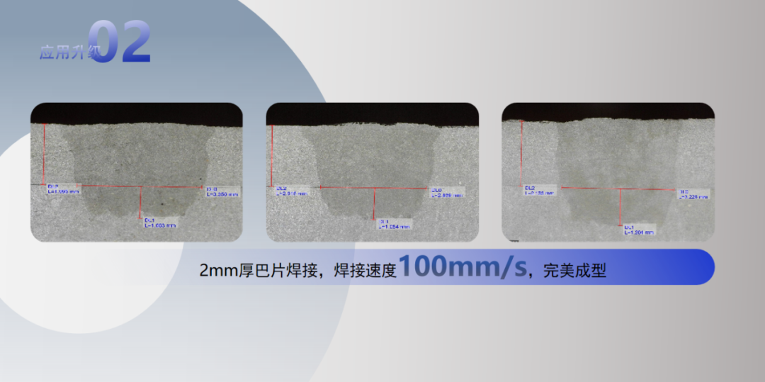在2mm厚巴片焊接中,以100mm/s的速度实现完美成型。